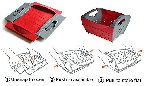 Diseño Plegable y Compacto: Aprovecha al máximo tu espacio con este colador plegable. Su diseño inteligente permite que se pliegue para guardarlo fácilmente en cualquier gabinete o cajón, ideal para cocinas con espacio limitado.